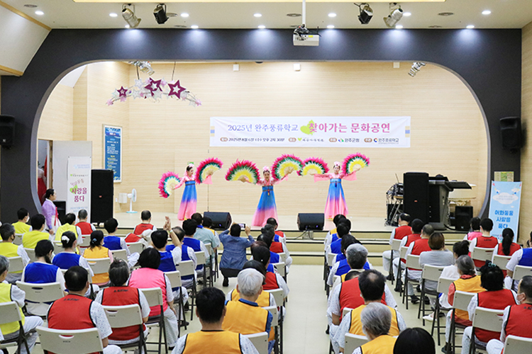 '완주풍류학교'가 제공한 이번 공연은 신명나는 국악연주부터 판소리, 민요, 부채춤